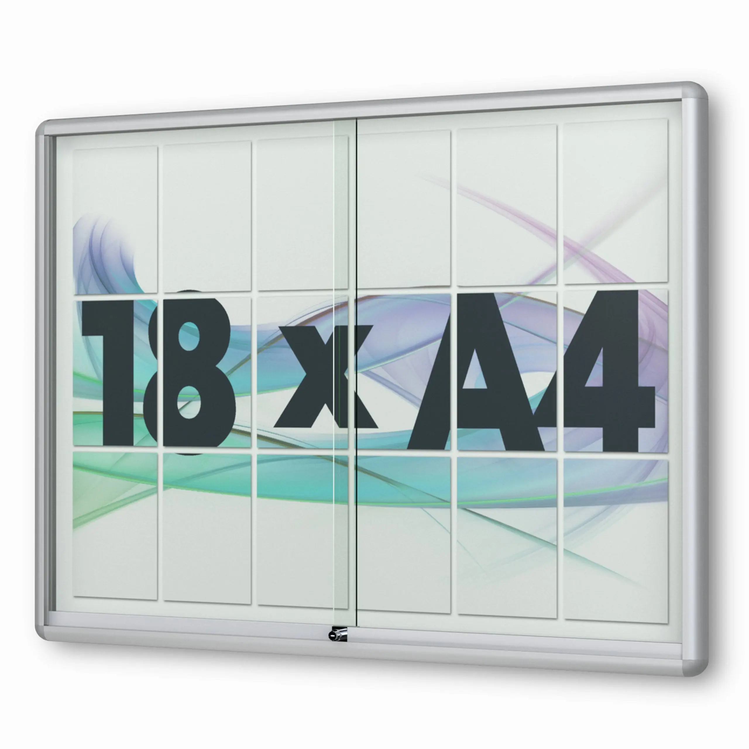 18 x DIN A4 Schaukasten Moveo - "die Schulvitrine" - 50 mm Bautiefe - mit Brandschutzklasse A1 - Rollengelagerte Schiebetüren✓ abschließbar✓ ESG-Sicherheitsglas✓